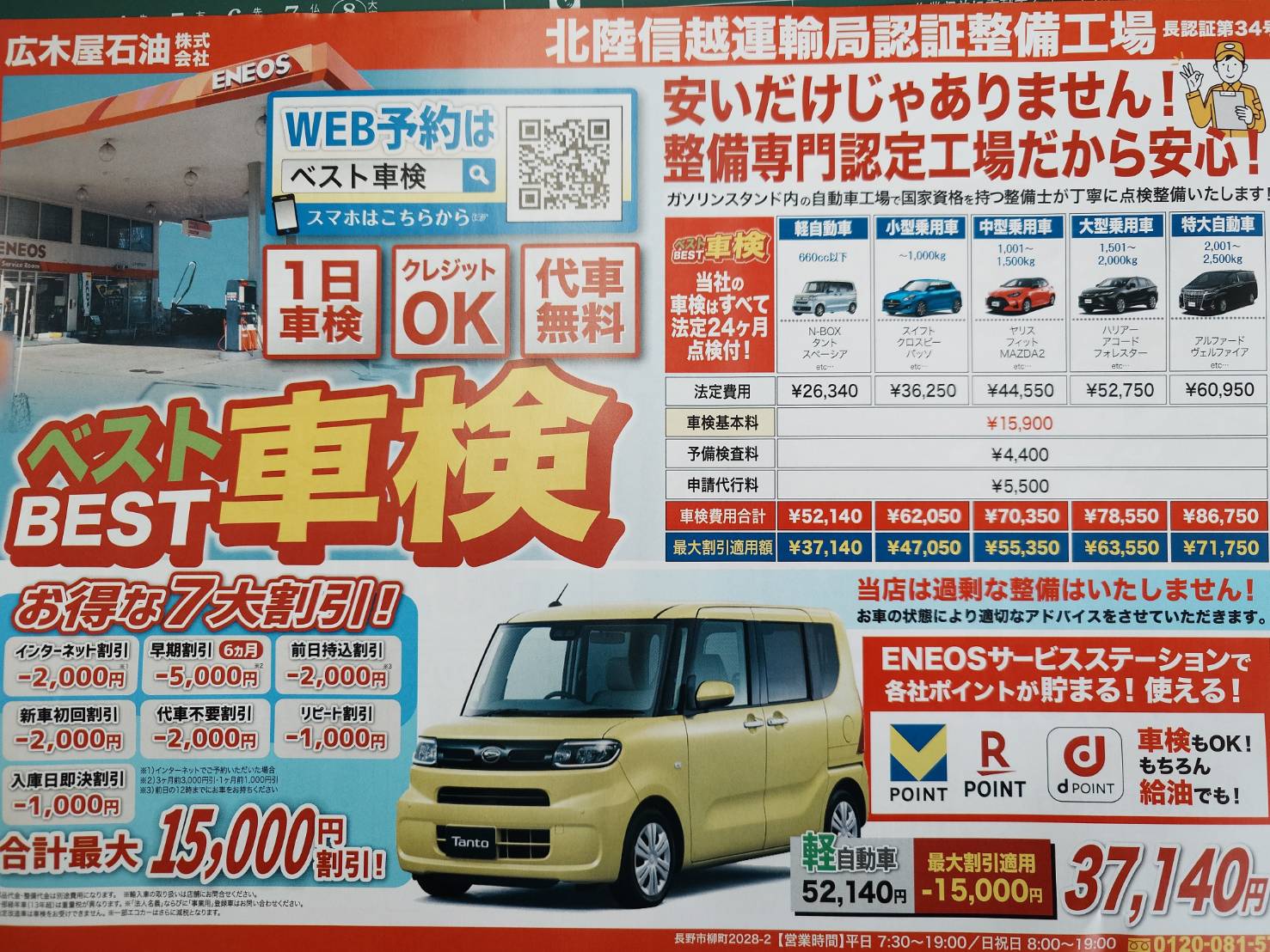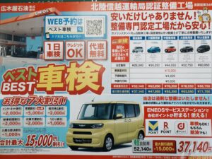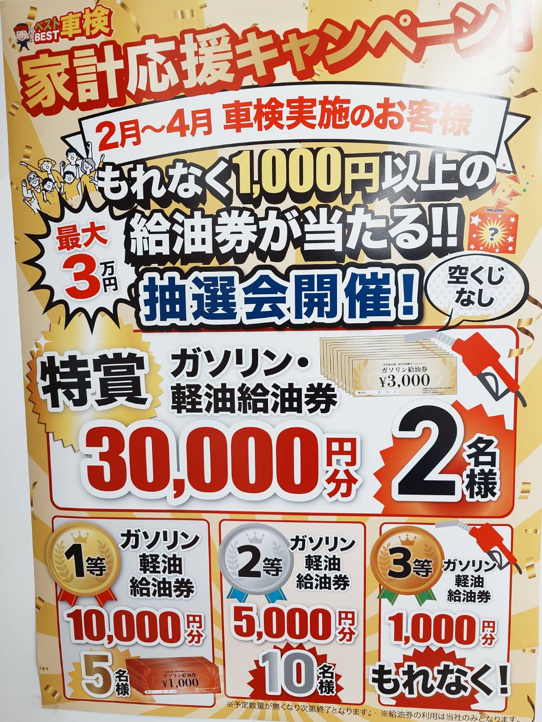 空くじなしの大変お得なプランとなってりますので車検実施2月~4月のお客様是非ともご連絡をお待ちしております!